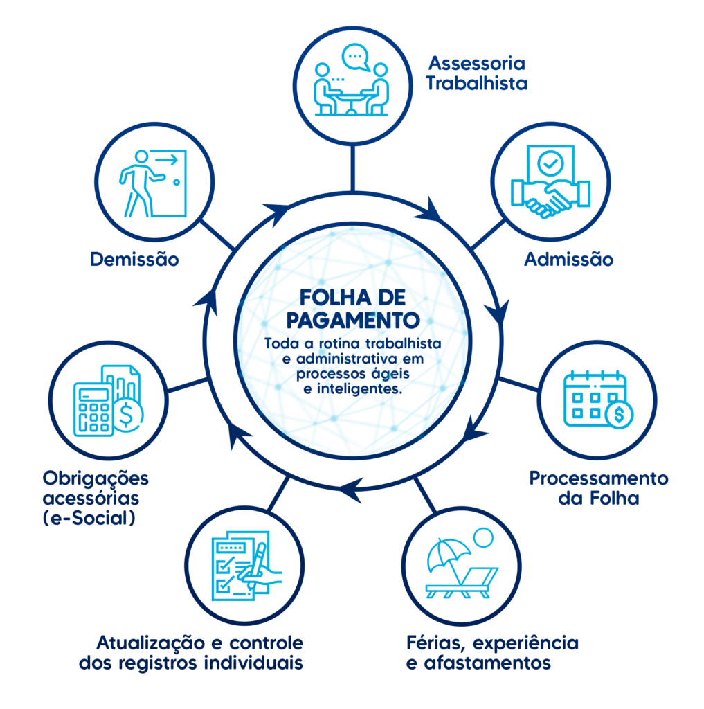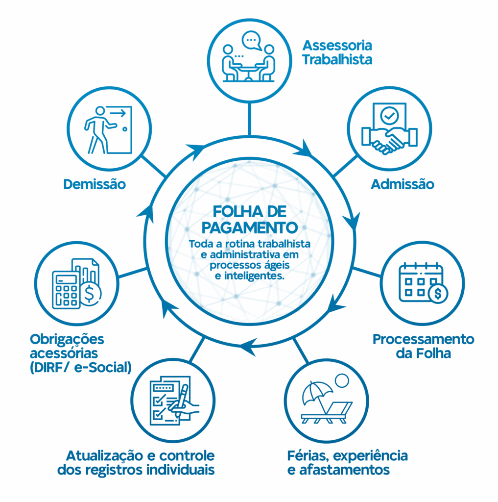 Cuidamos da folha de pagamento do seu negócio, não deixando nenhum detalhe para trás, entre cálculos, contratos e emissão de documentos, através de processos ágeis e inteligentes.